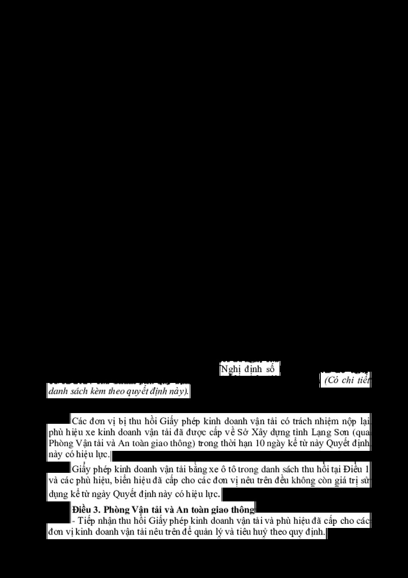 | Heading | Quyết định thu hồi giấy phép kinh doanh vận tải (HTX dịch vụ vận tải Bình Minh, Công ty TNHH Tây Kinh) | ||