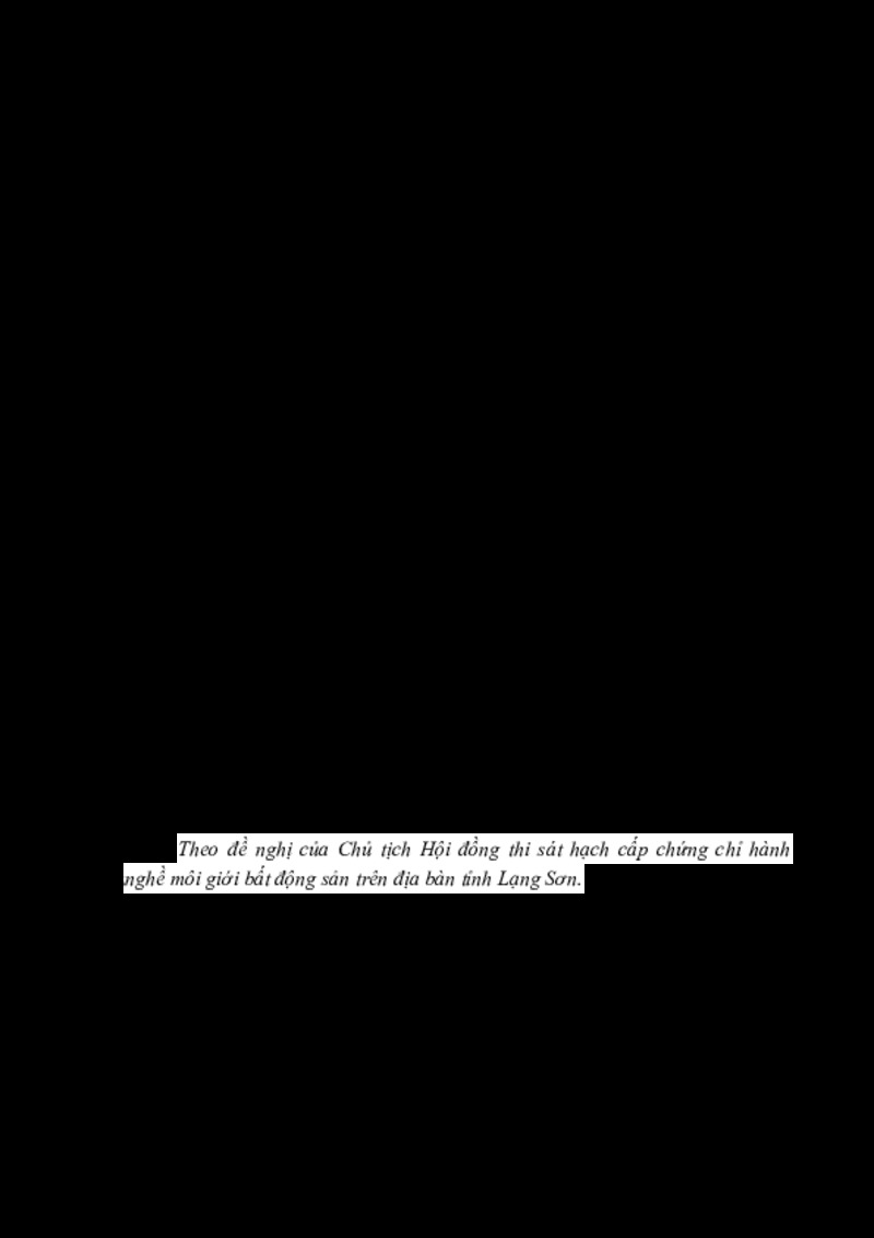 | Tiêu đề văn bản | Quyết định về việc phê duyệt danh sách thí sinh dự thi sát hạch cấp chứng chỉ hành nghề môi giới bất động sản trên địa bàn tỉnh Lạng Sơn | ||