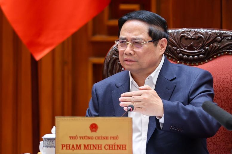 Thủ tướng Phạm Minh Chính chủ trì cuộc họp của Thường trực Chính phủ về công tác chuẩn bị tổ chức lễ khởi công, khánh thành, thông xe kỹ thuật các công trình, dự án chào mừng Đại hội đại biểu toàn quốc lần thứ XIV của Đảng - Ảnh: VGP/Nhật Bắc