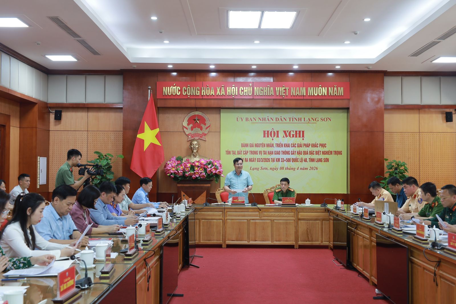 Chiều ngày 08/4/2026, tại trụ sở UBND tỉnh, UBND tỉnh Lạng Sơn đã tổ chức Hội nghị đánh giá nguyên nhân, triển khai các giải pháp khắc phục tồn tại, bất cập trong vụ tai nạn giao thông đường bộ đặc biệt nghiêm trọng xảy ra ngày 03/3/2026 tại Km33+500, Quốc lộ 4B, xã Na Dương.
