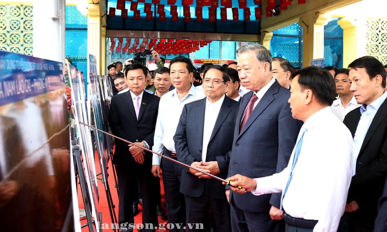 Trong chương trình làm việc, Tổng Bí thư Tô Lâm, Thủ tướng Chính phủ Phạm Minh Chính và các đồng chí Lãnh đạo các ban, bộ, ngành Trung ương, tỉnh Lạng Sơn đã khảo sát, kiểm tra thực tế tại Ga Đường sắt quốc tế Đồng Đăng, Lạng Sơn.