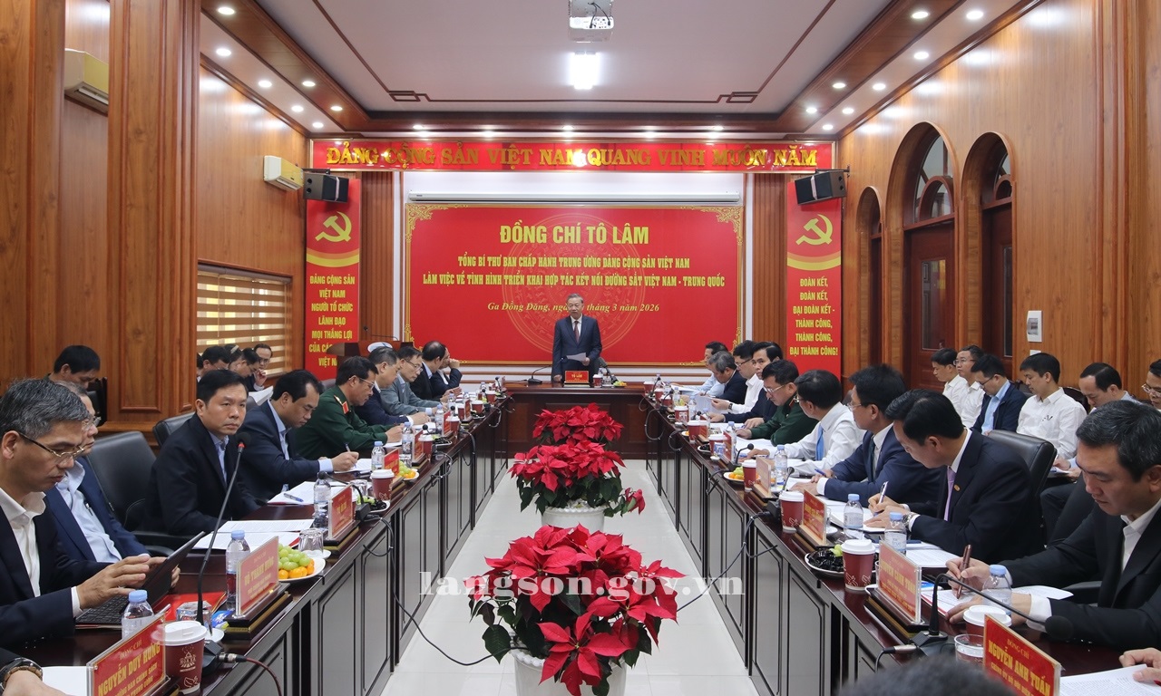 Sáng 19/3/2026, tại Ga Đường sắt quốc tế Đồng Đăng, tỉnh Lạng Sơn, Tổng Bí thư Tô Lâm đã chủ trì buổi làm việc về tình hình triển khai hợp tác kết nối đường sắt Việt Nam - Trung Quốc.