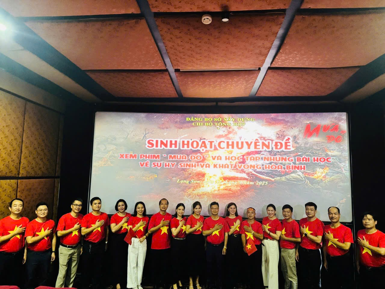 Thực hiện Kế hoạch số 03-KH/ĐU ngày 19/9/2025 của Đảng ủy UBND tỉnh về triển khai Chỉ thị số 50-CT/TW ngày 23/7/2025 của Ban Bí thư về tiếp tục đổi mới, nâng cao chất lượng sinh hoạt chi bộ trong giai đoạn mới, Chi bộ Tổng hợp phối hợp với Chi bộ Trung tâm Giám định chất lượng và Quy hoạch xây dựng đã tổ chức buổi sinh hoạt chuyên đề với hình thức xem phim Mưa Đỏ chào mừng Đại hội Đảng bộ tỉnh Lạng Sơn lần thứ XVIII. Thông qua buổi sinh hoạt, đảng viên được ôn lại truyền thống cách mạng hào hùng, thấm thía giá trị hy sinh vì độc lập, tự do của Tổ quốc, từ đó bồi đắp niềm tự hào, củng cố niềm tin và quyết tâm thực hiện thắng lợi các mục tiêu, nhiệm vụ mà Đại hội Đảng bộ tỉnh đề ra.