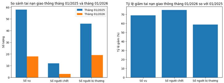 Trong tháng 01/2026 (tính từ ngày 15/12/2025 đến 14/01/2026), tình hình trật tự, an toàn giao thông trên địa bàn tỉnh có nhiều chuyển biến tích cực, tai nạn giao thông giảm sâu cả 3 tiêu chí so với cùng kỳ năm trước.