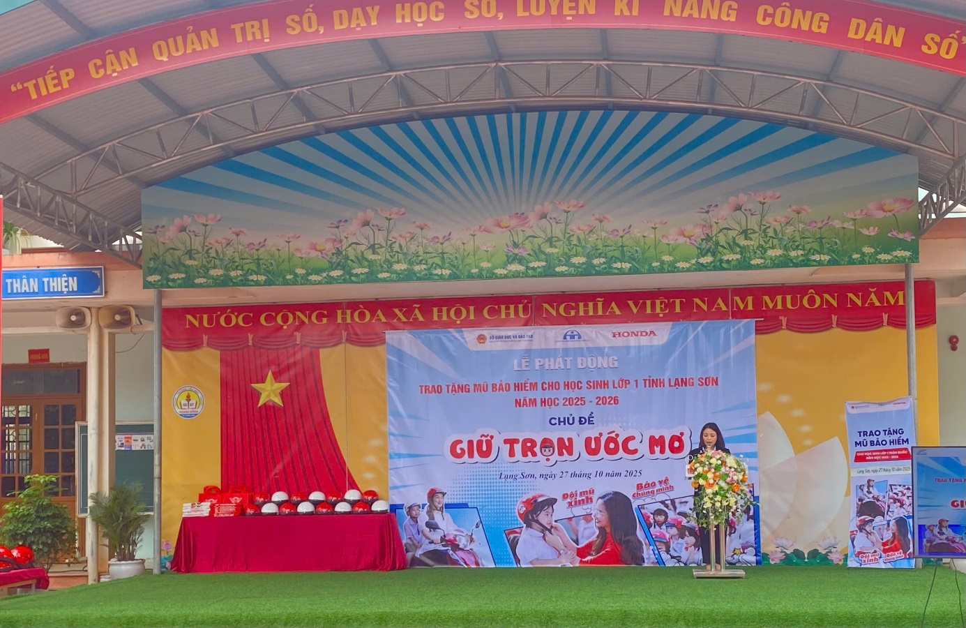 Lễ phát động trao tặng mũ bảo hiểm đạt chuẩn cho học sinh lớp 1 toàn tỉnh lạng sơn năm học 2025 -2026
