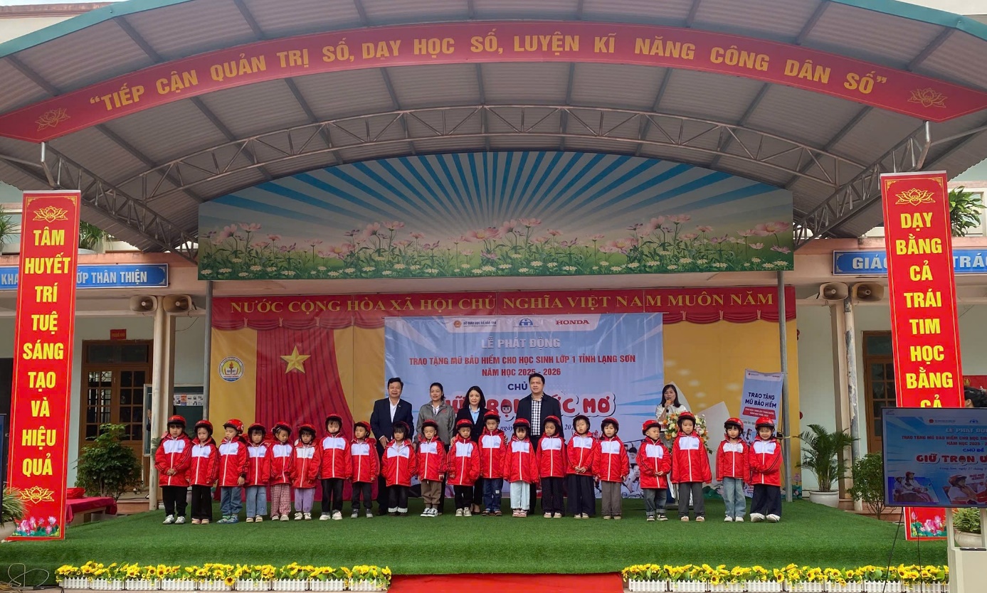 Sáng 27/10/2025, tại Trường Tiểu học Hoàng Đồng (phường Tam Thanh, tỉnh Lạng Sơn), Ban An toàn giao thông tỉnh Lạng Sơn đã phối hợp với Sở Giáo dục và Đào tạo tỉnh, Phòng Cảnh sát Giao thông - Công an tỉnh, Công ty Honda Vũ Hoàng Lê 2 và các đơn vị liên quan tổ chức Lễ phát động trao tặng mũ bảo hiểm đạt chuẩn cho học sinh lớp 1 toàn tỉnh. Sự kiện thuộc Chương trình "Trao tặng mũ bảo hiểm cho trẻ em" do Ủy ban An toàn giao thông Quốc gia, Bộ Giáo dục và Đào tạo và Công ty Honda Việt Nam triển khai toàn quốc, thực hiện Chỉ thị 23-CT/TW của Ban Bí thư Trung ương Đảng, Chỉ thị 10/CT-TTg của Thủ tướng Chính phủ và Chỉ thị số 31/CTTTg ngày 21/12/2023 của Thủ tướng Chính phủ về tăng cường công tác bảo đảm trật tự, an toàn giao thông cho lứa tuổi học sinh trong tình hình mới.
