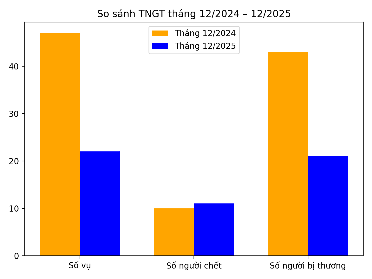 Biểu đồ phân tích, so sánh tai nạn giao thông tháng 12/2025 và cả năm 2025 so với cùng kỳ năm 2024