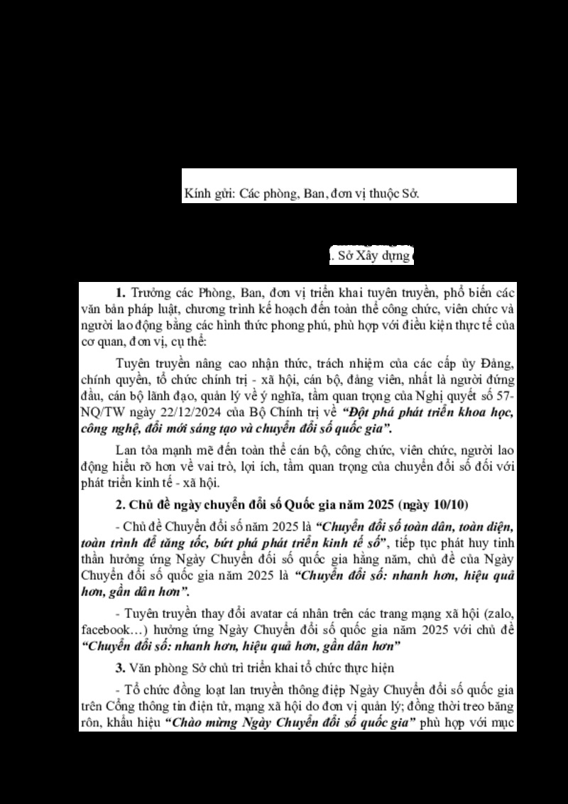 Tiêu đề văn bản | Vv Triển khai KH260 về Tổ chức các hoạt động hưởng ứng Ngày Chuyển đổi số quốc gia năm 2025 trên địa bàn tỉnh Lạng Sơn | ||